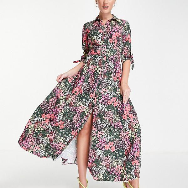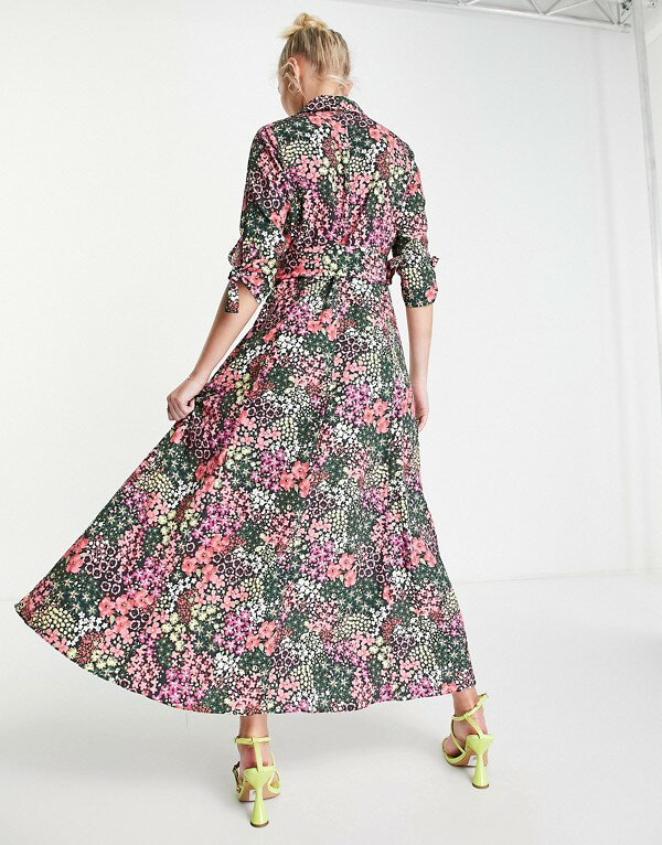 スタイルチート Style Cheat ミックスフローラルのスタイルチートベルト付きシャツミディドレス ワンピース レディース 女性 インポートブランド 小さいサイズから大きいサイズまで