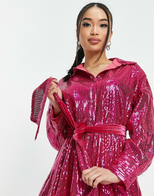 スタイルチート Style Cheat 明るいスパンコールのスタイルチートベルト付きシャツドレス ワンピース レディース 女性 インポートブランド 小さいサイズから大きいサイズまで
