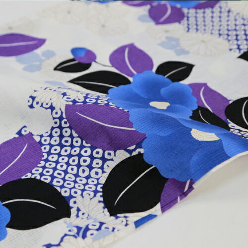 新作浴衣3点セット花火大会・夏祭り・盆踊りなどの今年の夏の楽しいイベントをお気に入りの新しい浴衣で楽しみませんか?白地にブルーの椿のお花が印象的な浴衣。