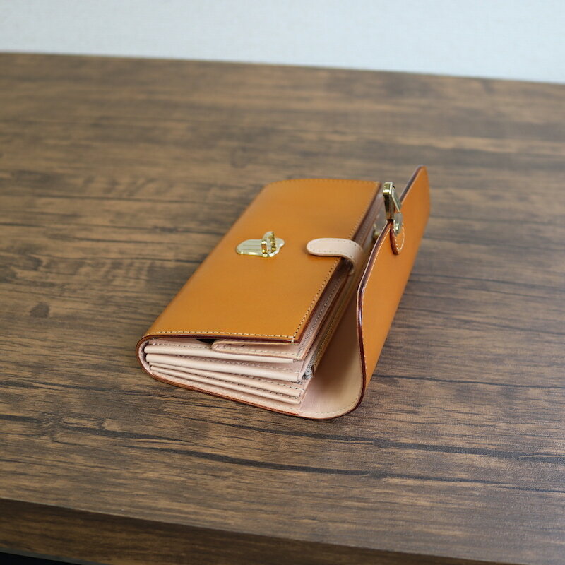 内装の革は国産牛の国産鞣しの国産にこだわり抜いた、とても上質なタンローを使用しております。