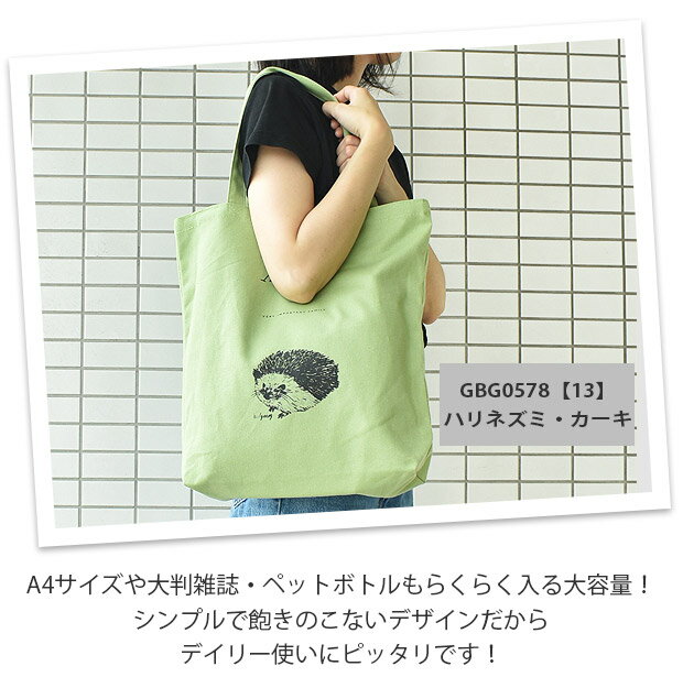 シンプルで飽きのこないデザインだから、デイリー使いにピッタリです! 【送料無料】≪メール便対応≫ 3ポケット付き アニマル トートバッグ トート バッグ 縦型 A4トート キャンバス生地 布製 大容量 マチ付き ファスナー付き レディース アニマル柄 動物柄 ネコ イヌ ハリネズミ ウサギ ハムスター ミントブルー アイボリー カーキ グレー トートバッグ キャンバス トートバッグ キャンバス生地 トートバッグ キャンバス 大人 トートバッグ キャンバス 無地 GBG0578 sf-gbg0578 ●サイズ:【約W38×H37×D10cm】※持ち手含まず 詳細は画像にてご確認下さいませ ●重量:230g ●カラー:全5色 GBG0578【11】ネコ・ミントブルー GBG0578【12】イヌ・アイボリー GBG0578【13】ハリネズミ・カーキ GBG0578【14】ウサギ・グレー GBG0578【15】ハムスター・アイボリー ●素材:綿 ●原産国:CHINA ※メール便に限り、何枚買っても送料無料♪